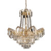 The Adagio is an impressive 9 light chandelier in gold plate finish with faceted clear glass beads and droplets. An adjustable drop at time of fitting up to 1350mm and therefore perfect for high ceilings. suitable for use with LED lamps
