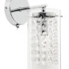 A single wall light in a polished chrome finish, complete with a clear glass shade housing a bead droplet design with toggle switch. Fully dimmable and suitable for use with LED lamps. Matching items available