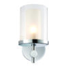 The Britton is a bathroom wall fitting, finished in a chrome effect plate with a clear ridged glass shade. Matching ceiling light available and both fittings are suitable for use with LED lamps
