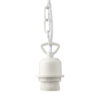 A ceiling light chain set with an adjustable drop of 150-1500mm. A gloss white finish with a white cord, metal ceiling rose and an E27 lamp holder. Suitable for use with LED lamps