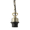 A ceiling light chain set with an adjustable drop of 150-1510mm. An antique brass finish with a twisted black cord, metal ceiling rose and an E27 lamp holder. Suitable for use with LED lamps