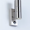 A stainless steel 2 light outdoor fitting for directing light both upwards and downwards. Comes with a built in PIR motion sensor making it suitable for lighting doorways and paths as well as for added security. Matching items available