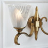 Elegant in appearance and design, this exclusive twin wall light is finished in antique brass and complemented by beautiful art deco style glass shades. Matching items available and compatible with LED lamps