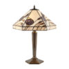 This pretty table light depicts a damselfly floating around a Mackintosh inspired rose. Teamed with a traditional bronze effect fitting and compatible with LED lamps