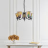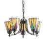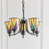 A wonderful addition to the Dark Star range, this uplight oendant incorporates Tiffany style shades with iridised glass inserts and a satin black fitting. Compatible with LED lamps.