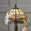 The Dragonfly table lamp in beige is a traditional interpretation of the iconic Tiffany Dragonfly design, in natural muted colours with coloured glass beading and teamed with a dark bronze effect fitting. Compatible with LED lamps and matching items available