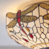 The Dragonfly flush ceiling light in beige is a traditional interpretation of the iconic Tiffany Dragonfly design, in natural muted colours with coloured glass beading and teamed with a dark bronze effect fitting. Compatible with LED lamps and matching items available