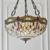 The large inverted Dragonfly beige pendant is a traditional interpretation of the iconic Tiffany Dragonfly design in natural muted colours with coloured glass beading and teamed with a dark bronze effect fitting. Compatible with LED lamps, dimmable and matching items available