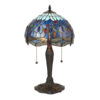 A stunning small table light with the iconic Tiffany Dragonfly design in a vivid blues with multi coloured glass beading. Teamed with a dark bronze effect fitting and compatible with LED lamps