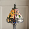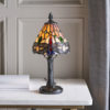 A stunning mini table light with the iconic Tiffany Dragonfly design in a vibrant oranges and reds, with glass beading a dark bronze effect fitting. Compatible with LED lamps