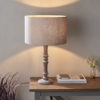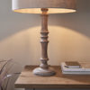 A high quality solid wood classic table base with a grey wash and brushed bronze metalwork finish. Partner with a natural looking shade to complete the look or match to other interior accent colours. Complete with inline foot switch.