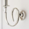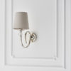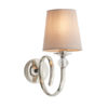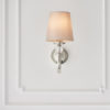A stunning wall light incorporating a beautifully curved arm adorned with crystal glass detail and finished in a polished nickel plate, further complemented by a marble silk shade. Compatible with LED lamps and dimmable