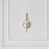 A stunning wall light incorporating beautifully curved arms adorned with crystal glass detailing and finished in a polished nickel plate. Compatible with LED lamps and dimmable.