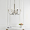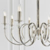 A stunning 8 light pendant incorporating beautifully curved arms adorned with crystal glass detailing and finished in a polished nickel plate. Compatible with LED lamps and dimmable.