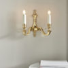 The Fenbridge twin wall light has a classic candle design, made from solid brass with gloss cream candle drips. Dimmable and compatible with LED lamps. Matching items available.