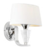 The Fiennes wall is finished in chrome effect with crystal detailing and white fabric shade. This fitting is dimmable and suitable for use with LED lamps. Matching pendant and table lamp also available