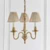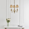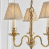 The Fitzroy 3 light pendant is a premium quality, solid brass fitting in a Georgian style with a decorative detailed finish. Comes with pretty, pleated beige organza effect shades. Matching items available