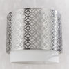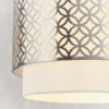 A beautiful layered 2-tier single pendant. The inner vintage white linen shade is framed by a decorative metal satin nickel shade, both combine to create a soft diffused light effect.