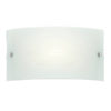 A single wall light featuring a rectangular white glass diffuser detailed with 3 decorative cut out lines held in place by polished chrome clips. Both dimmable and suitable for use with LED lamps