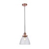 An authentic ‘resto’ style industrial pendant, finished in aged copper plating with authentic knurled lamp holder details and clear glass shades . Suspended from height adjustable black fabric flex, pair with filament LED lamps for that perfect industrial style. The perfect addition for today’s stylish homes to create that on trend bar, bistro look.