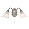 The Hardwick twin wall light is one item within a wider range with an antique silver effect finish and frosted glass shades. This fitting has a pull cord switch, is dimmable and suitable for use with LED lamps. Antique brass finish also available