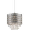 This unwired pendant has a shiny chrome punched metal outer finished perfectly by the addition of clear glass bead droplets suspended from the centre at the bottom