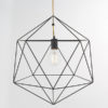 A modern geometric style large pendant with a matt black finish and contrasting yellow fabric flex, a stunning focal point in any room.