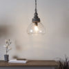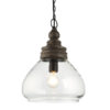 A distinctive pendant light inspired by India. With taupe grey distressed wood detailing and clear glass shade this soft shaped pendant will add an asian feel to any interior.