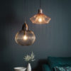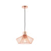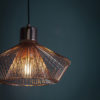 This metal caged pendant is finished in a copper effect plate with a natural wood trim. A modern twist on vintage and industrial style lighting. The design casts an interesting light pattern and works well with a filament bulb. Height is adjustable at time of fitting and suitable for use with LED lamps.