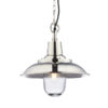 High quality fisherman’s style pendant finished in bright nickel with clear glass shade, suspended from a height adjustable chain set. Match with similar style industrial products, such as the Elcot wall light for an eclectic interior look.