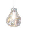 High quality enclosed blown glass single pendant with amazing iridescent effect, perfect for use with filament LED lamps. Chrome plated metalwork with cool grey height adjustable flex set.