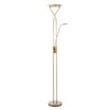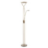 An LED mother and child task floor light finished in an antique brass effect plate with subtle marbling detail to the dish. The main light and task light can be lit together or separately from each other.
