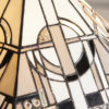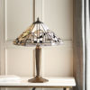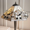 An eye catching art deco style table light in black, white and grey teamed with a traditional bronze effect fitting. Compatible with LED lamps