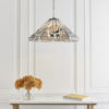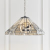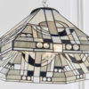 An eye catching art deco style pendant in black, white and grey teamed with a chrome effect fitting. Dimmable and compatible with LED lamps