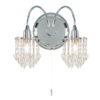 Polished chrome plate combined with clear glass crystals make up this twin wall light bracket with pull cord switch. Dimmable and suitable for use with LED lamps. Matching ceiling fitting available for a coordinated look