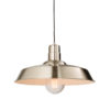 A shiny metal pendant with a nickel finish. An adjustable drop, dimmable and suitable for use with LED lamps
