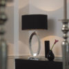 This large cast metal oval table lamp with a square design base is finished in silver plate complemented by a black silk shade with taupe silk inner. Suitable for use with LED lamps and supplied with inline switch