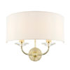 The Nixon twin light wall fitting is finished in a bright nickel plate. The arms are complemented with a touch of crystal and the fitting is topped with a vintage white, faux silk semi-circular shade. Dimmable and suitable for use with LED lamps. Matching items available