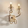 A twin wall light from the Oksana antique brass range. Features faceted lead crystal droplets hanging from two decorative arms