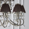 A 21 light pendant from the Oksana nickel range. Features faceted lead crystal droplets and chocolate pleated shades with a polished nickel trim. Matching items available and compatible with LED lamps