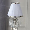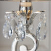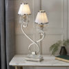 A twin table lamp from the Oksana nickel range. Features faceted lead crystal droplets, a decorative double armed stem base and white pleated shades with a polished nickel trim. Matching items available and compatible with LED lamps