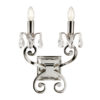 A twin wall light from the Oksana nickel range. Features faceted lead crystal droplets hanging from two decorative arms