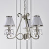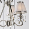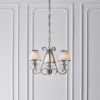 A 3 light pendant from the Oksana nickel range. Features faceted lead crystal droplets and white pleated shades with a polished nickel trim. Matching items available and compatible with LED lamps