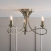 The Penn is a decorative range featuring sweeping, curved arms. This 3 light semi-flush fitting is finished in a brushed brass effect plate
