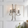 The Penn twin wall light is a beautiful fitting comprising of elegantly curved arms and finished in a nickel plate. Suitable for an array of living areas, hallways and reception rooms. A stunning addition to your room especially when teamed with decorative filament candle lamps. Matching items available