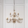 The impressive Polina antique brass 12-light pendant is an elegant addition to any room. Finished in an antique brass plate with k9 crystal glass detailing to give it an opulent feel