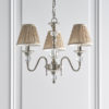 The Polina Nickel 3-light pendant is an elegant addition to any room. Finished in a polished nickel plate and adorned with k9 crystal glass detailing and beige organza effect shades to give it an opulent feel