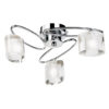A 3 light flush ceiling fitting finished in polished chrome with 3 oval shaped arms and matching shaped K9 crystal shades. Dimmable and suitable for use with LED lamps. Matching wall light available