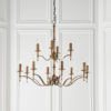 This elegant 12 light pendant from the Stanford antique brass range has beautifully curved arms and simple clean detailing. Matching items available
