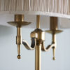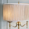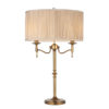 This elegant table light from the Stanford antique brass range has beautifully curved arms and simple clean detailing. Its complemented by a pretty, beige organza effect shade. Matching items available